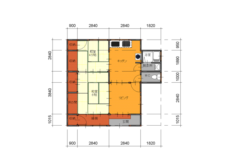 | 間取内容 | 和室6畳 1室 和室4.5畳 1室 洋室4.5畳 1室 DK1室 | ||