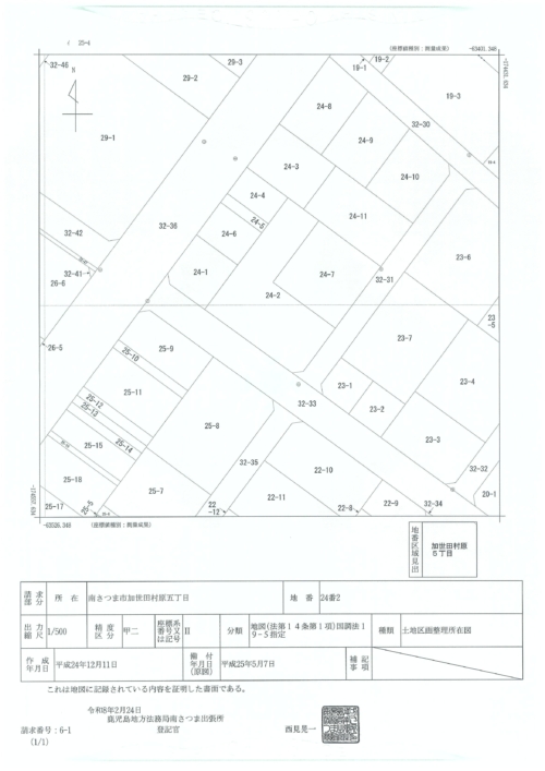 | 地目 | 畑 | 用途地域 | 第一種中高層住居専用 |